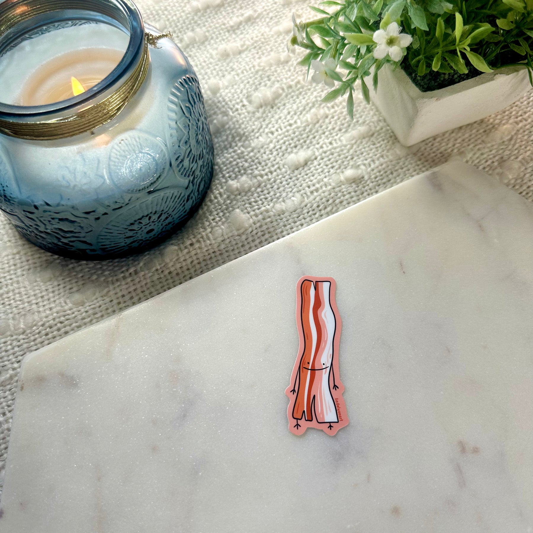 Who could resist this lil smiling bacon dude? A perfect companion for the Egg Dude Sticker!